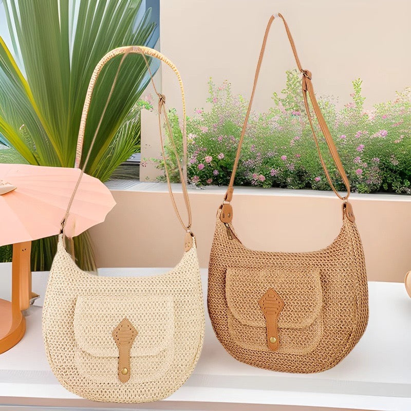 ☀️ Chic et polyvalent, le sac bandoulière Reina est doté d'une poche avant et d'une silhouette incurvée qui apporte une touche bohème à toutes vos tenues. Bandoulière réglable, tons terreux et suffisamment spacieux pour vos balades quotidiennes ou vos escapades ensoleillées.