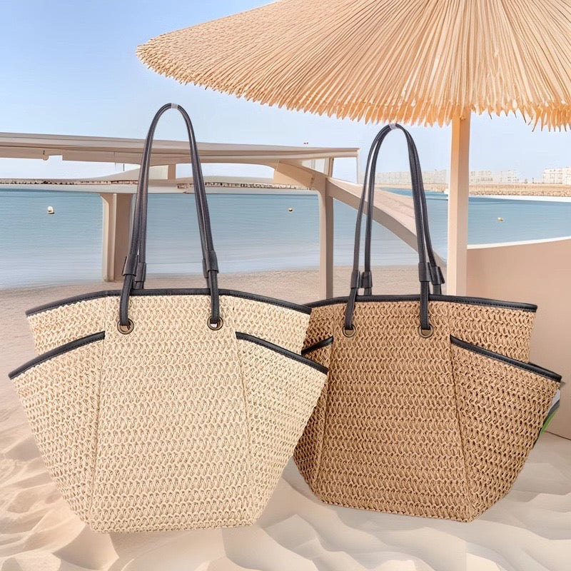 Élégant, structuré et prêt pour le bord de mer. Le sac fourre-tout Estela allie des lignes nettes à un charme tissé et des poignées en cuir contrastées — idéal pour vos escapades à la plage ou vos courses en ville avec une touche de chic côtier.