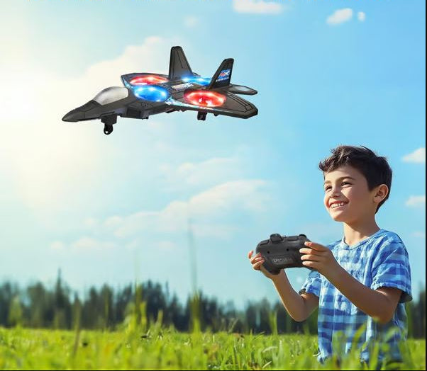 Planeur de chasse télécommandé – Avion de cascade électrique en mousse avec lumières LED.