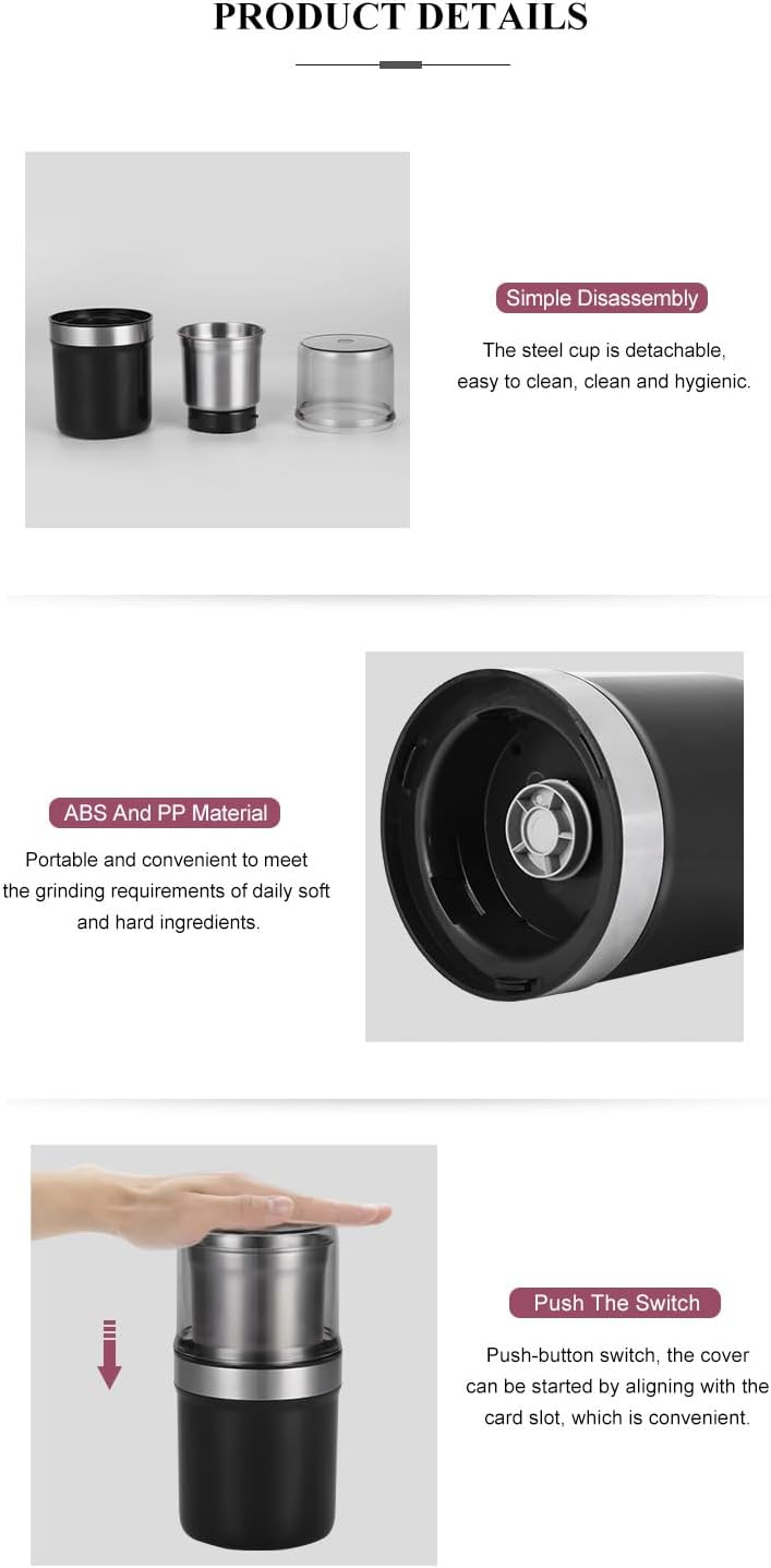Detachable and water washable, the stainless steel cup can be rinsed directly after use, making cleanup quick and hygienic. The included brush helps sweep out any remaining grounds, while the compact build and detachable power cord make storage simple and space-saving.
